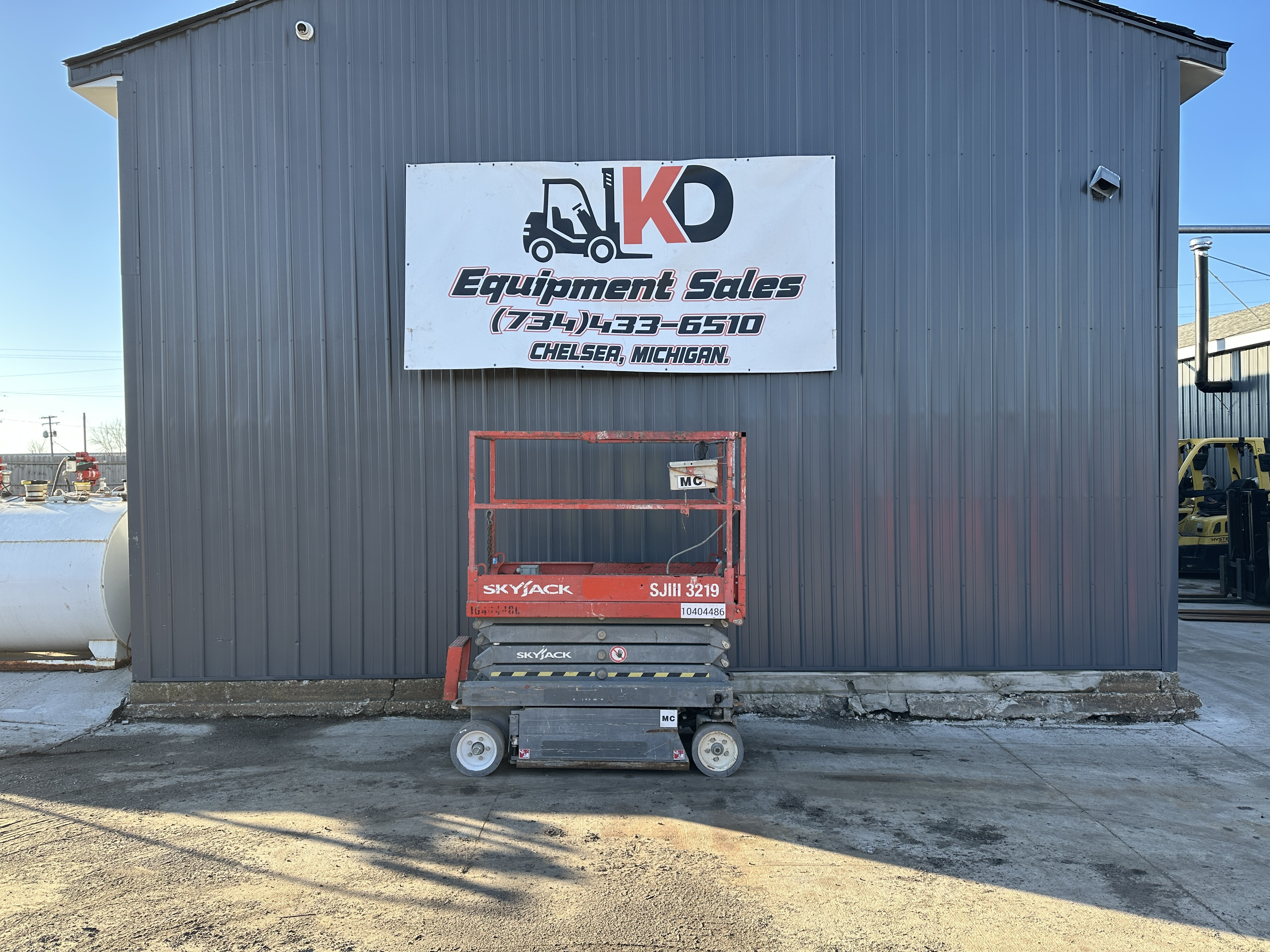 Used Skyjack SJIII 3219 Scissor Lift - Runs and operates great. Key Specifications: - Maximum platform height: 19 ft - Working height: 25 ft - Lift capacity: 550 lb - Power: Electric (battery) - Tire type: Non-marking - Hours: 262 - Good tires Delivery available nationwide.