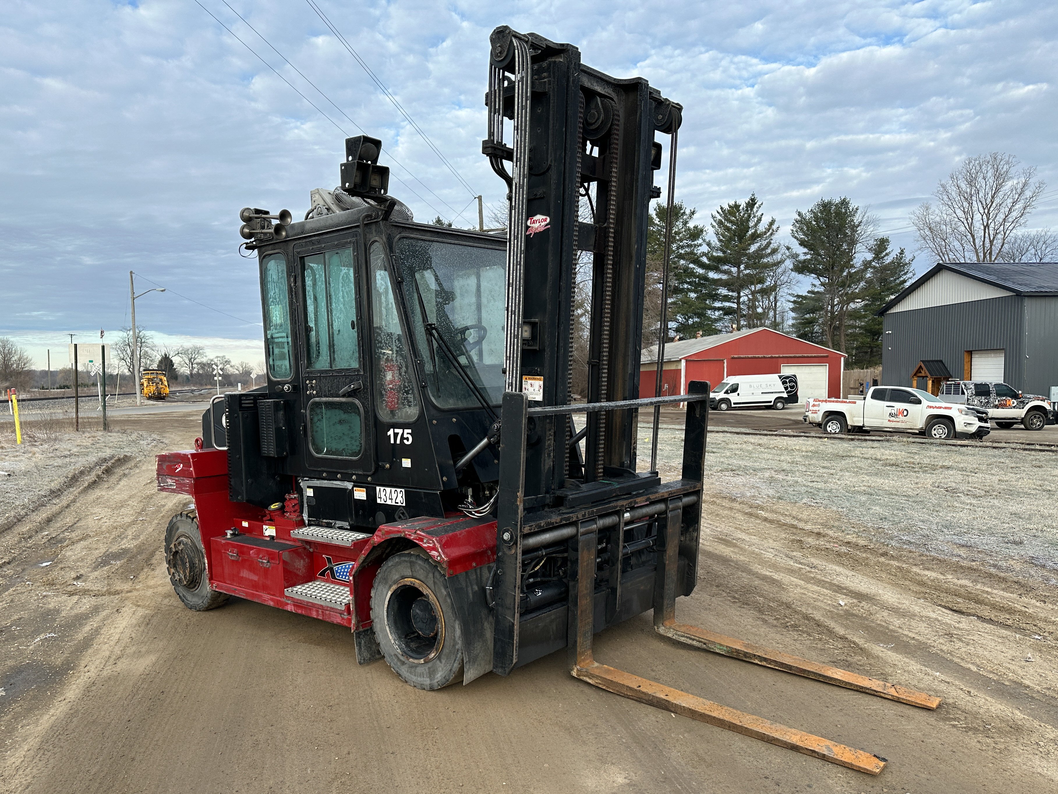 Used Taylor X175 Forklift - Runs and operates great. Key Specifications: - Lift capacity: 17,500 lb - Maximum lift height: 180 in (15 ft) - Mast: 2-stage - Tire type: Pneumatic - Power: Diesel Cummins - Attachments: Side shift, independently controlled fork-positioner Delivery available nationwide.