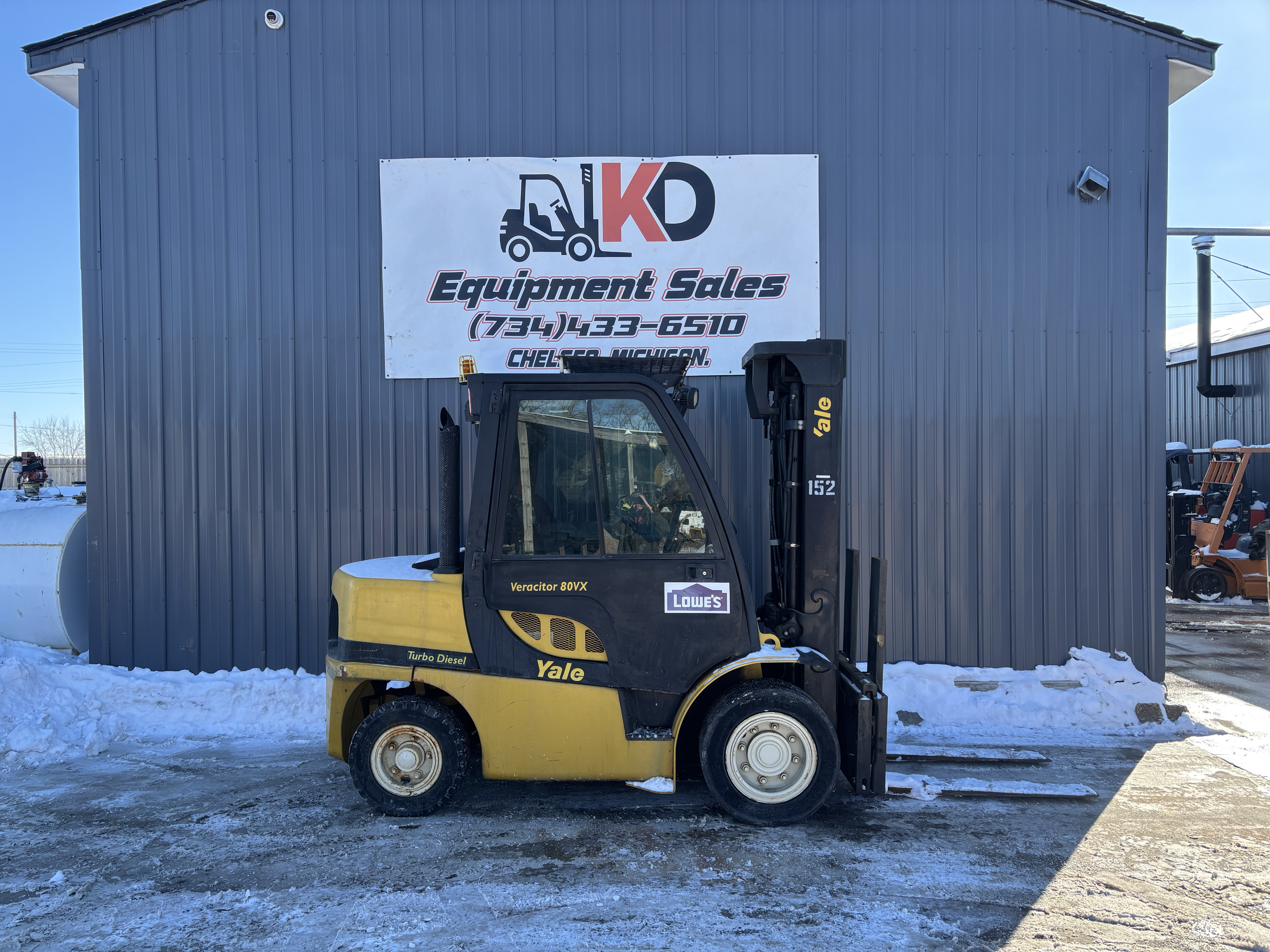 Used 2011 Yale GDP080 Forklift - Runs and operates great. Key Specifications: - Lift capacity: 8,000 lb - Maximum lift height: 207 in - Tire type: Pneumatic - Power: Diesel - Attachments: Side shift, fork positioner Delivery available nationwide.