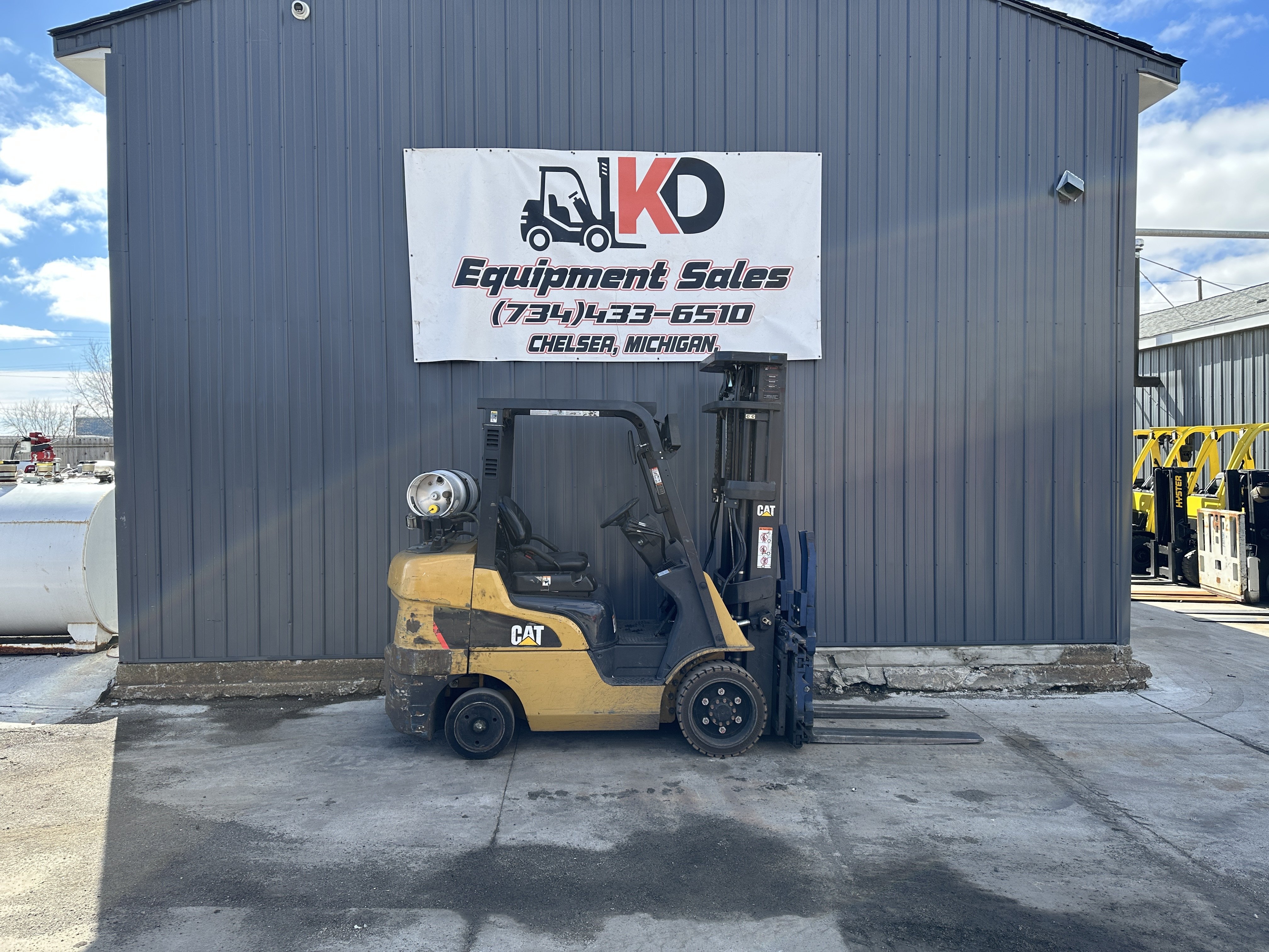 Used CAT 2C6500 Forklift - Runs and operates great. Key Specifications: - Lift capacity: 6,500 lb - Maximum lift height: 198 in (16 ft 6 in) - Mast: Three stage - Tire type: Non-marking cushion - Power: LP (propane) - Attachments: Push-pull (Side shift available upon request) Delivery available nationwide.
