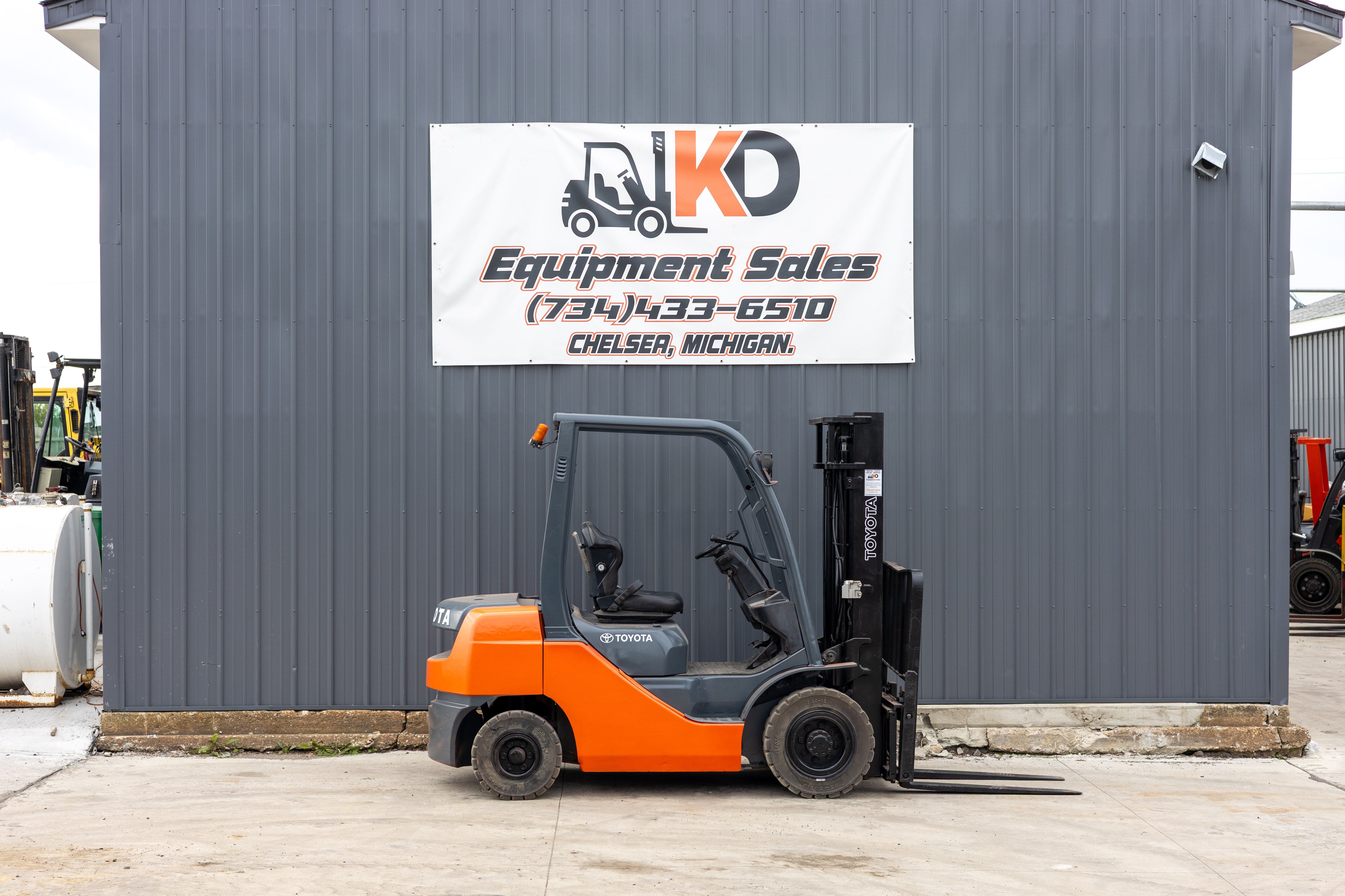 Used Toyota 8FDU25 Solid Pneumatic Forklift – Runs and operates great. Key Specifications: - 5,000 lb lifting capacity - 131" maximum lift height (10.9 feet) - Side shift - Diesel powered - Solid pneumatic tires for indoor and outdoor use - Delivery available nationwide