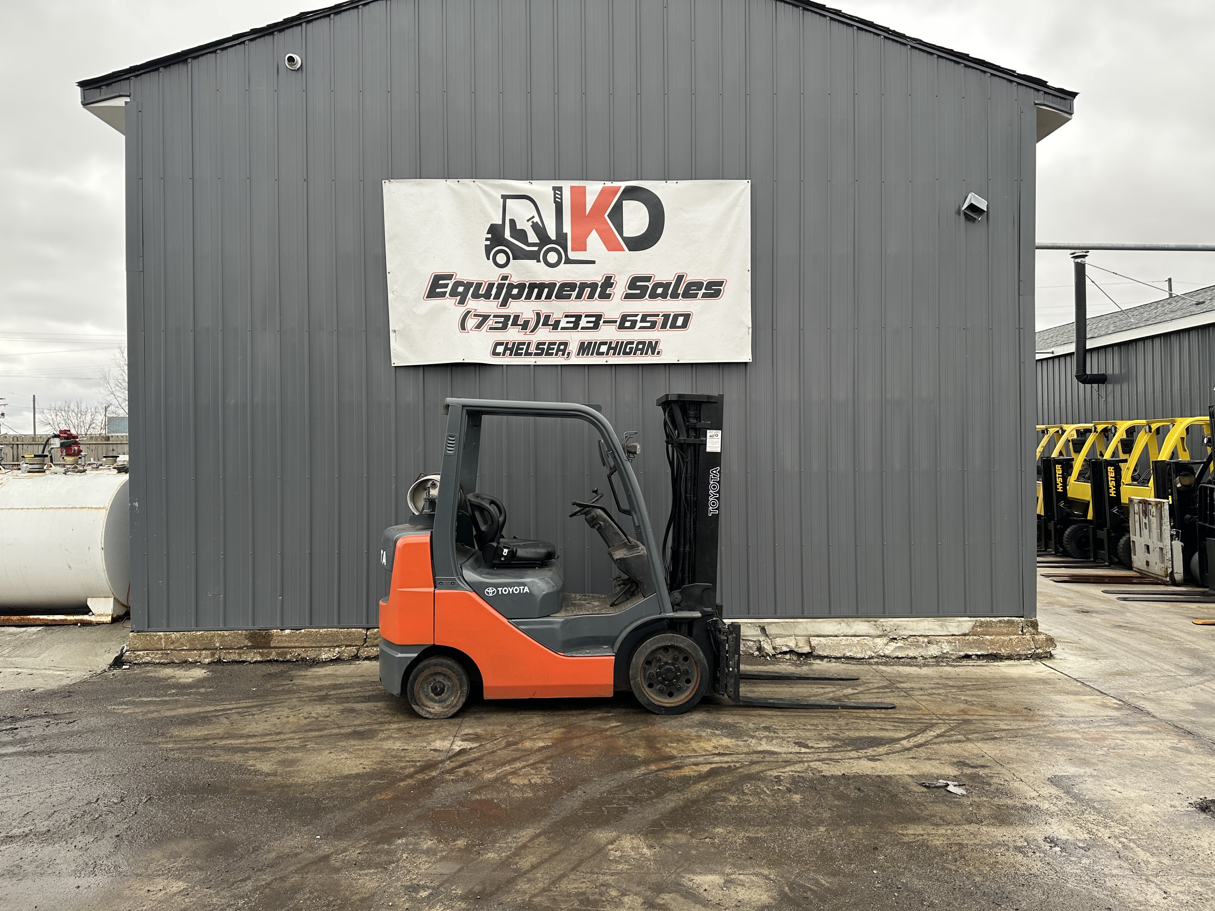 Used Toyota 8FGCU25 Forklift - Runs and operates great. Key Specifications: - Lift capacity: 5,000 lb - Maximum lift height: 189 in (15 ft 9 in) - Mast: 3-stage - Tire type: Solid cushion - Power: LP (propane) - Attachments: Side shift, fork positioner Delivery available nationwide.